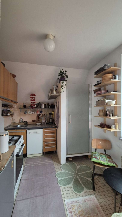 Die Wohnung hat teilweise noch baujahrestypische Merkmale aus dem vergangenen Jahrhundert, so ist die Dusche zum Beispiel noch in der Küche vorzufinden und es gibt ein weiteres Zimmer unterm Dach (gehört nicht zur Wohnfläche).